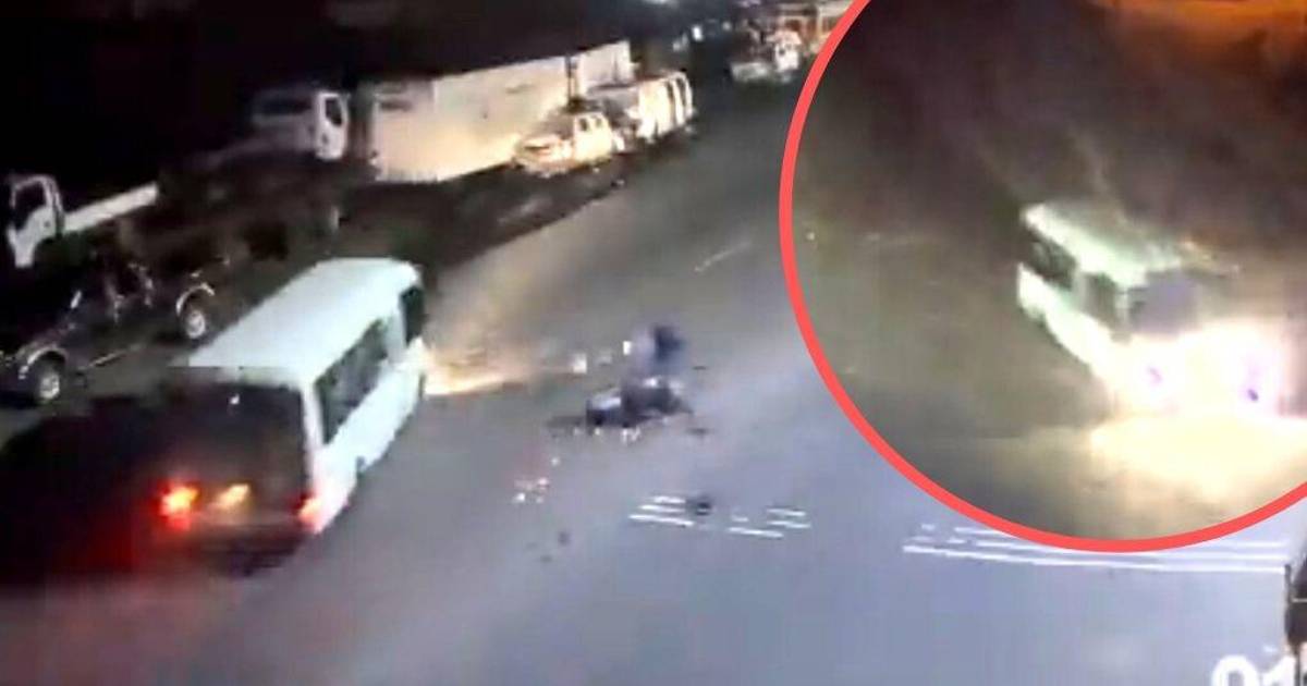 En imágenes, la unidad, un tipo mediano de la ruta urbana, atropella a un motociclista en horas de la noche después de conducir a alta velocidad y de forma temeraria.