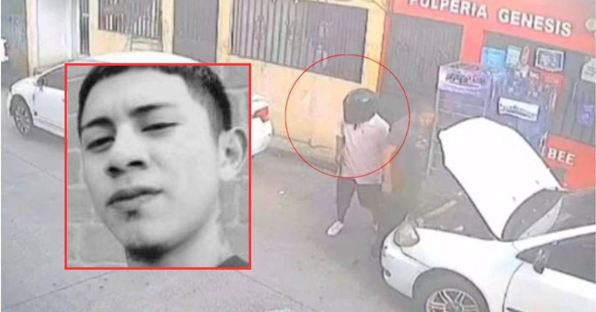 Cámaras de seguridad del sector captaron los últimos momentos de vida del joven, quien llevaba un casco de motocicleta para ocultar su rostro.