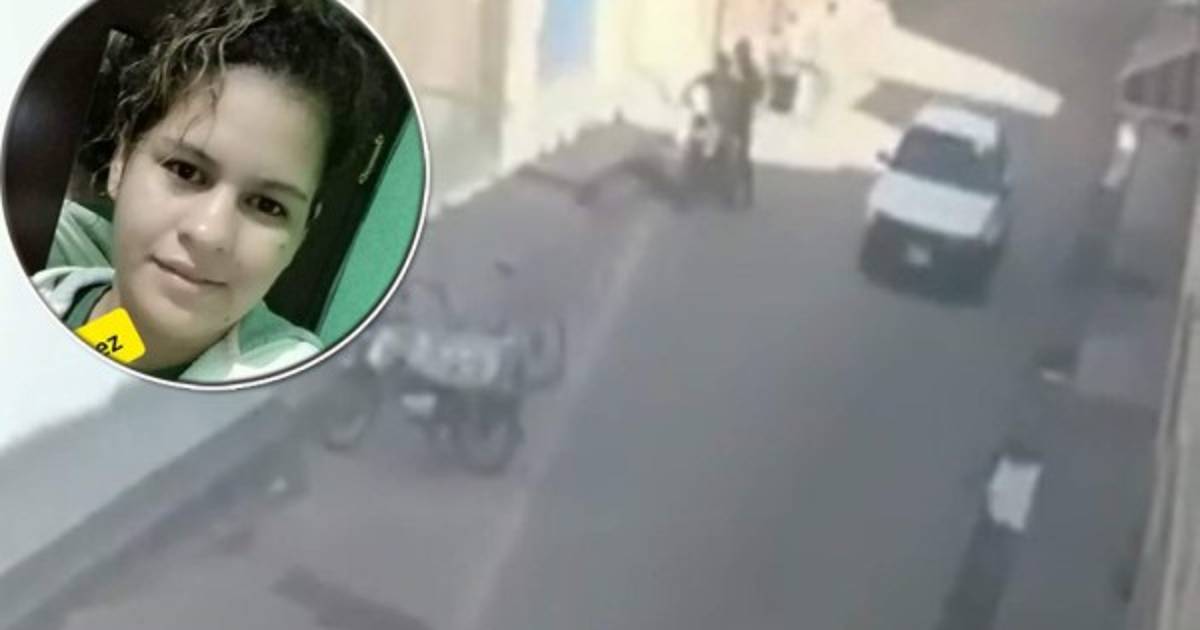 En las imágenes se ve cuando los dos hombres a bordo de una moto interceptan a la mujer, identificada como Milagro Cruz (26 años), que está sentada en la acera.