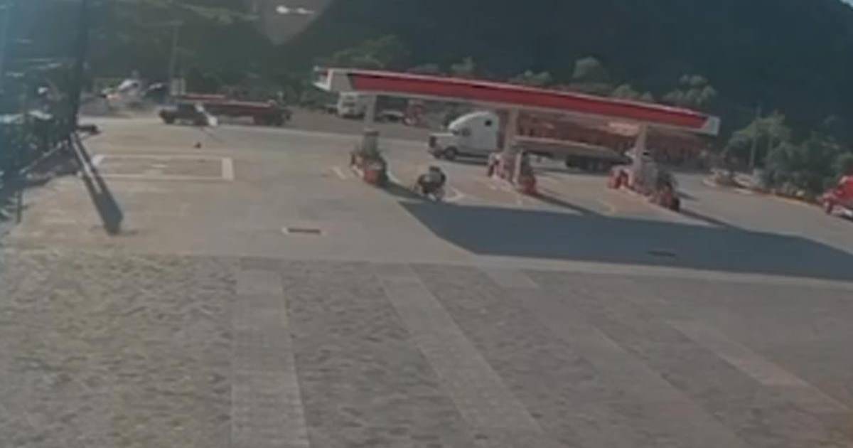 En el video se ve que cuando el motociclista entra en la carretera, pero cuando va por el centro, al parecer no se fijó, fue impactado por un pick-up que visiblemente iba a alta velocidad.