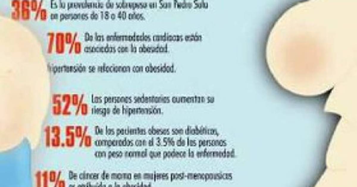 Entre los problemas de salud que normalmente afectan a los obesos están las enfermedades cardiovasculares, endocrinológicos como la diabetes tipo dos, edema, diversos tipos de cáncer, lumbalgias, artritis, dolor de hombros y diabetes gestacional.