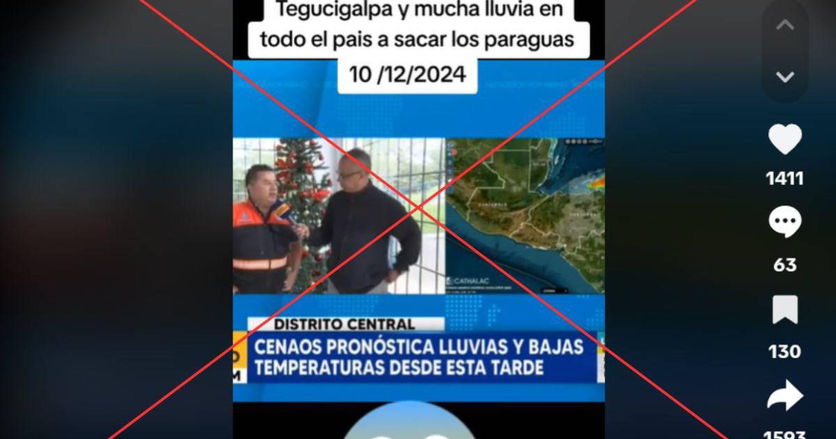 “Francisco morazan sera donde mas frío hara de 1 a 3 grados seran las temperaturas en Tegucigalpa y mucha lluvia en todo el pais a sacar los paraguas 10/12/2024”, se lee literalmente en el texto insertado en el clip que, desde el 10 de diciembre, ha acumulado más de 1,500 compartidos.