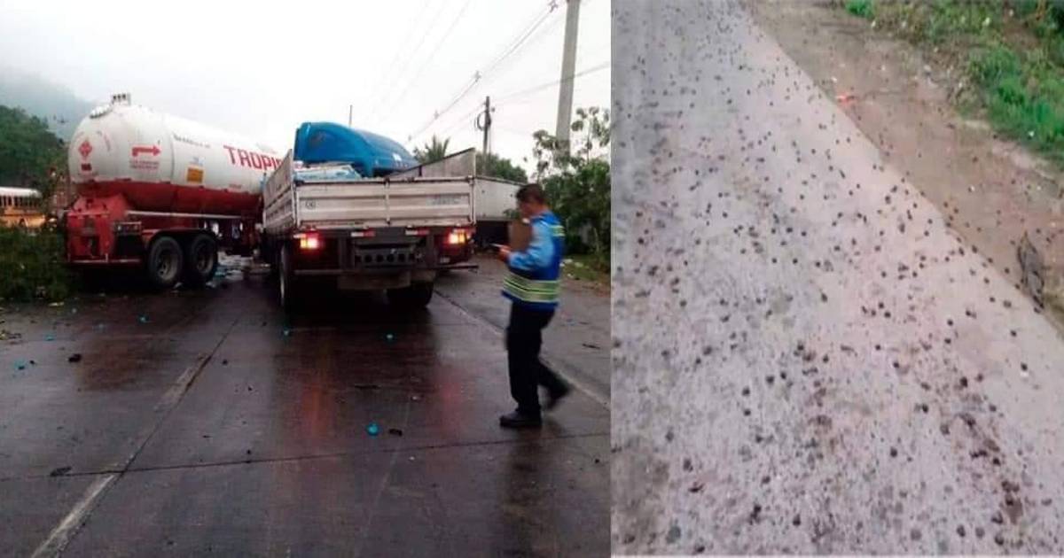 Cinco vehículos chocaron en la carretera CA-13, cerca de Río Nance, Choloma, y varias personas resultados heridas. Unos pequeños animales serían los causantes.