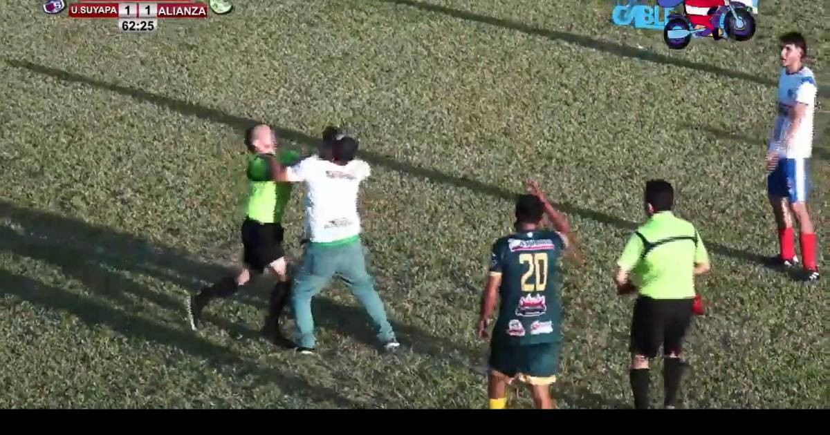El árbitro no se dejó y también respondió con puñetazos al director técnico que perdió la cabeza en este partido de la Liga Mayor de Honduras.